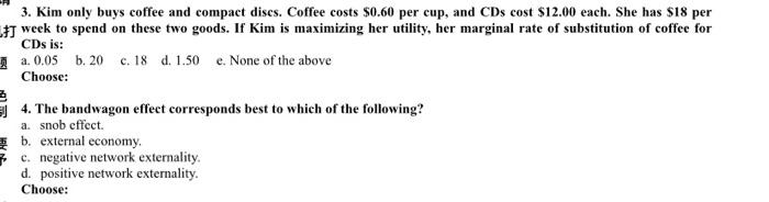 Solved 3 Kim Only Buys Coffee And Compact Discs Coffee Chegg Com